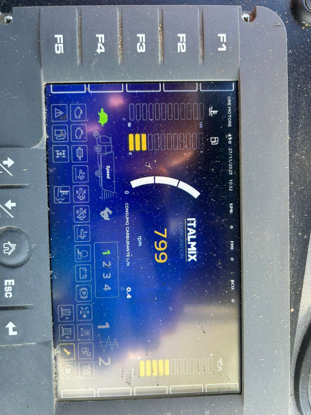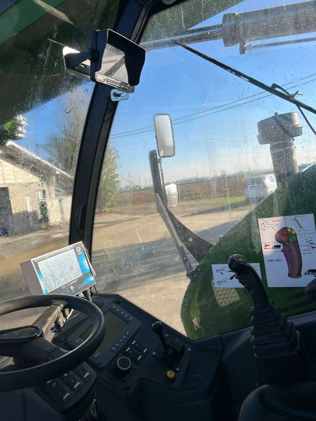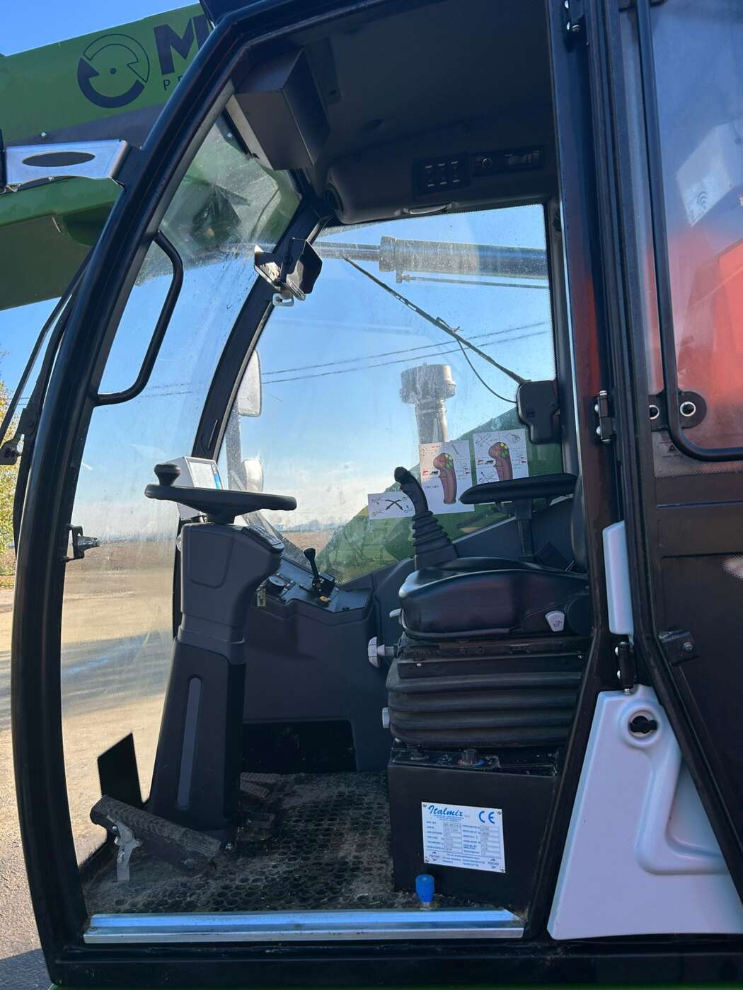 Cabina anteriore a sinistra montata su supporti antivibranti, sedile molleggiato, comandi ergonomici con joystick integrato nel sedile di guida, pannello multifunzione per il controllo della macchina.